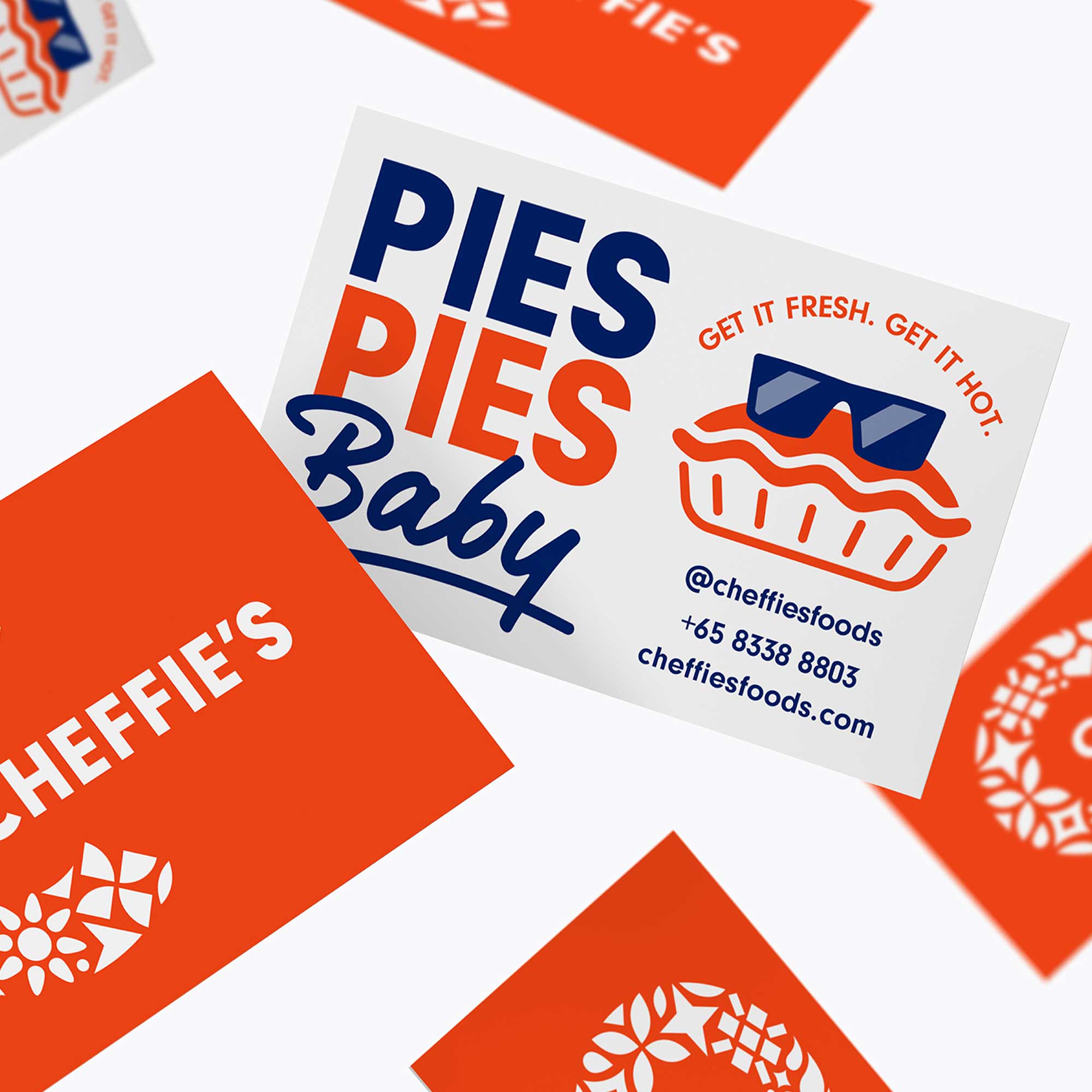 Cheffie's makes quality food products in Singapore. The first product launch for the brand is PIES PIES BABY, handcrafted gourmet freshly-baked pies. The brief was to create both the master brand Cheffie's and the product line. The name Cheffie's is a nod to the founder's story and experience as a Singapore master and television chef. PIES PIES BABY was crafted to express a fun, energetic spirit for the flavourful pies and to put a unique spin on the naming and tone of voice based on the 1990 music hit "Ice Ice Baby". We feel that the high quality and unique flavours fit well with the "VIP" vibes of the hit song.