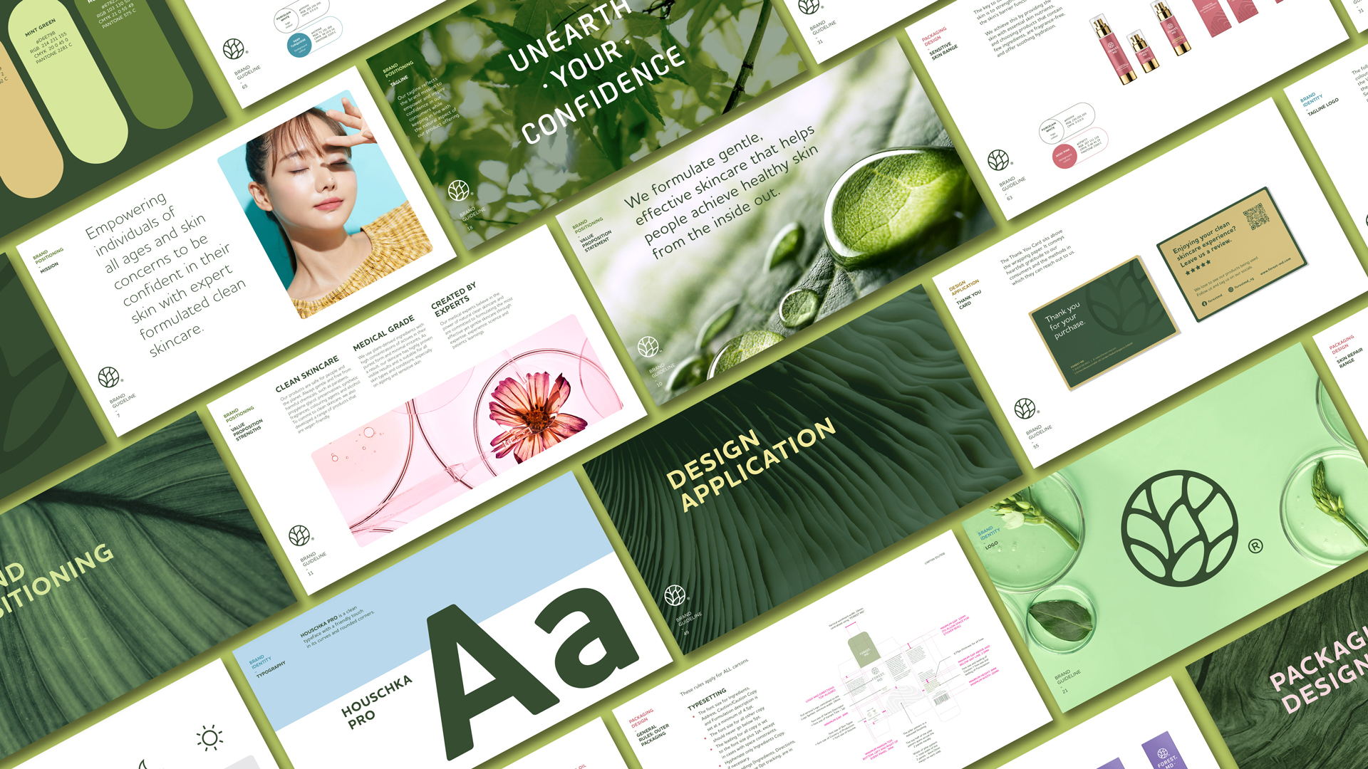 The brand identity concept highlights the abundant skin-beneficial ingredients found in nature, taking a close-up view to extract and concentrate the actives for gentle yet effective skincare. The packaging design uses a visual system inspired by the colours of the forest to distinguish the skincare range. The outer carton features a unique nature-inspired embossed pattern to further segment the product pillars for easy customer navigation.