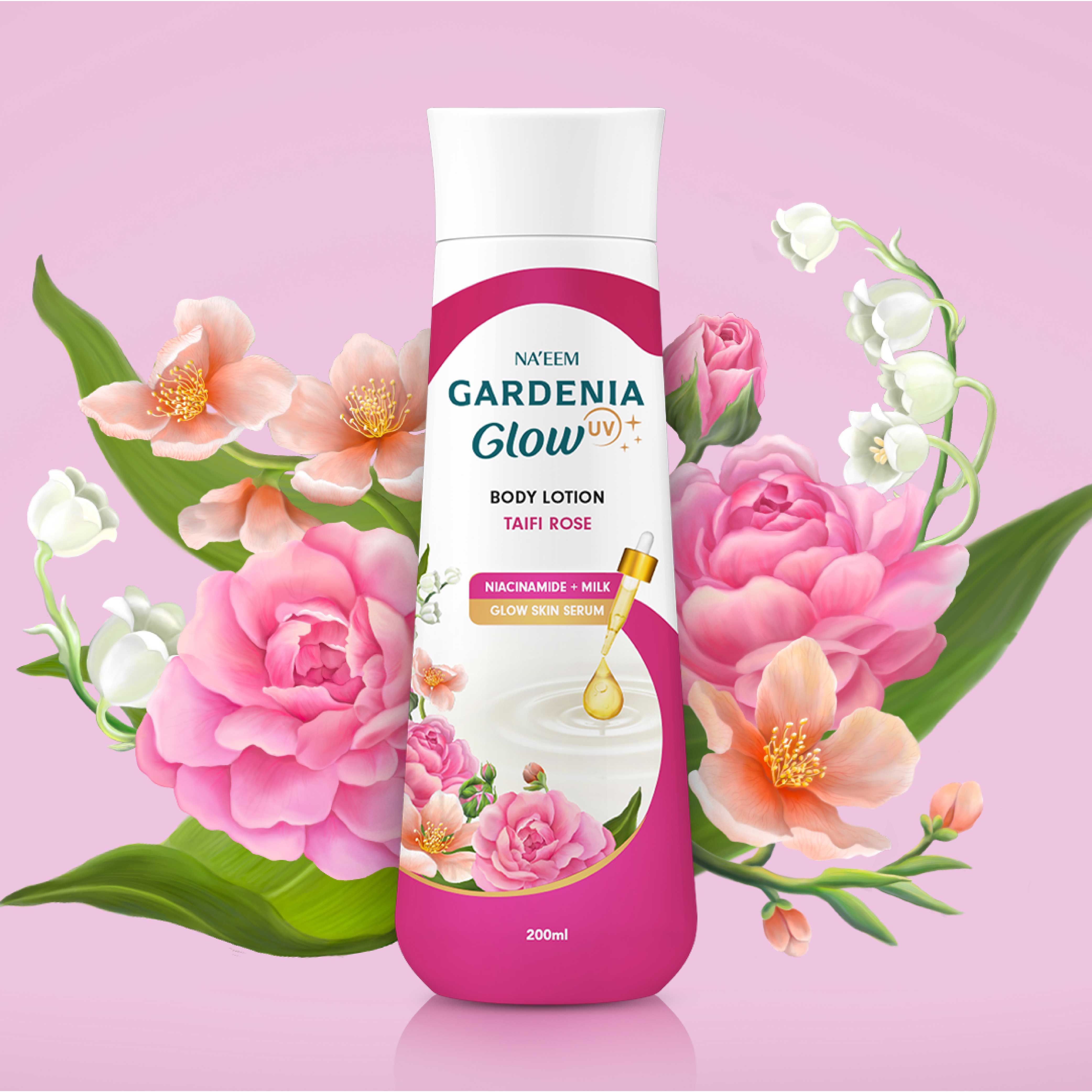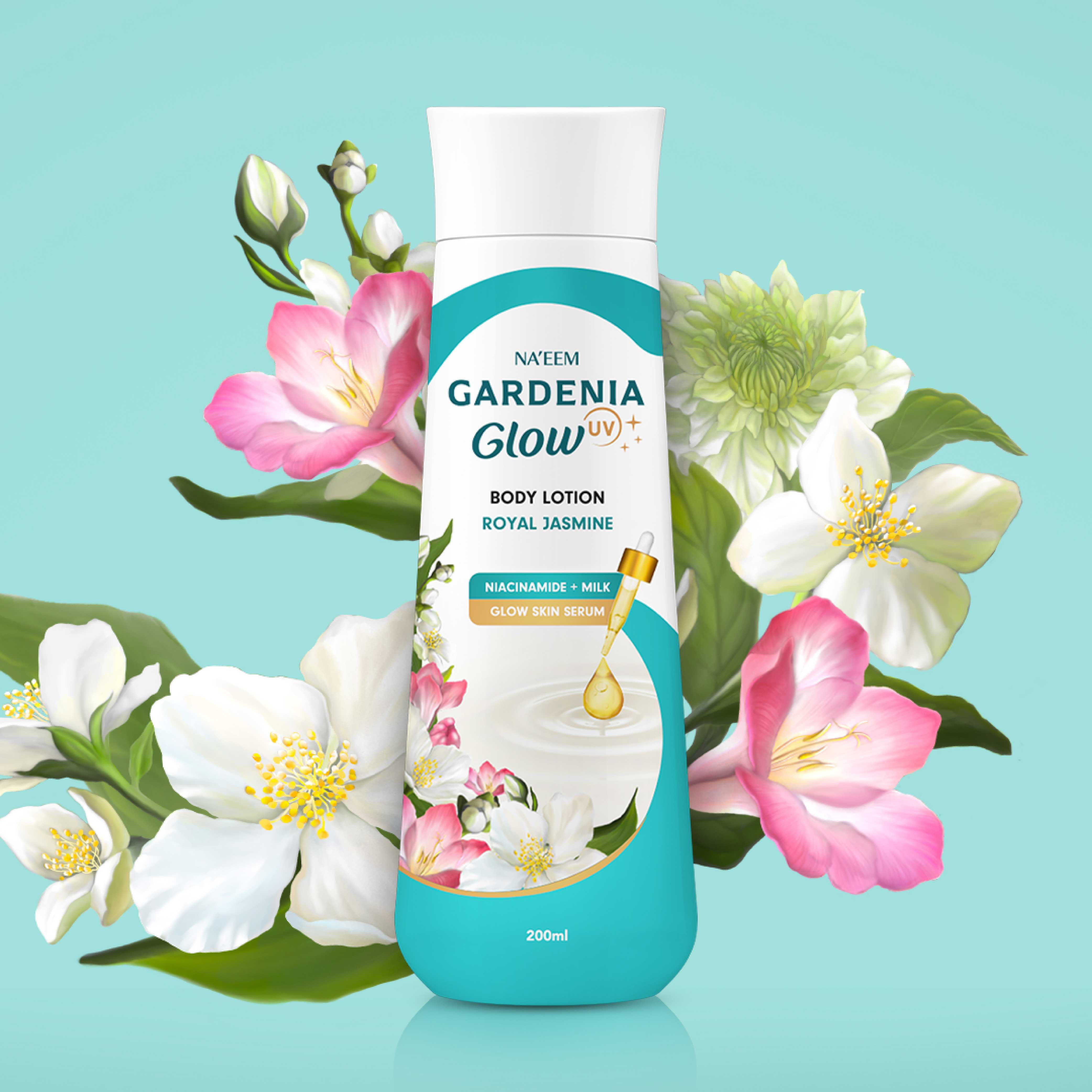 Introducing Gardenia Glow by NA'EEM: The Ultimate Floral Skin Serum Elevate your skincare routine with Gardenia Glow, the latest innovation from NA'EEM. This luxurious body lotion is infused with niacinamide and milk, designed to leave your skin feeling refreshed, fragrant, and glowing. As part of our new Gardenia by NA'EEM sub-brand, this lotion not only pampers your skin but also delivers powerful floral and fragrant benefits.