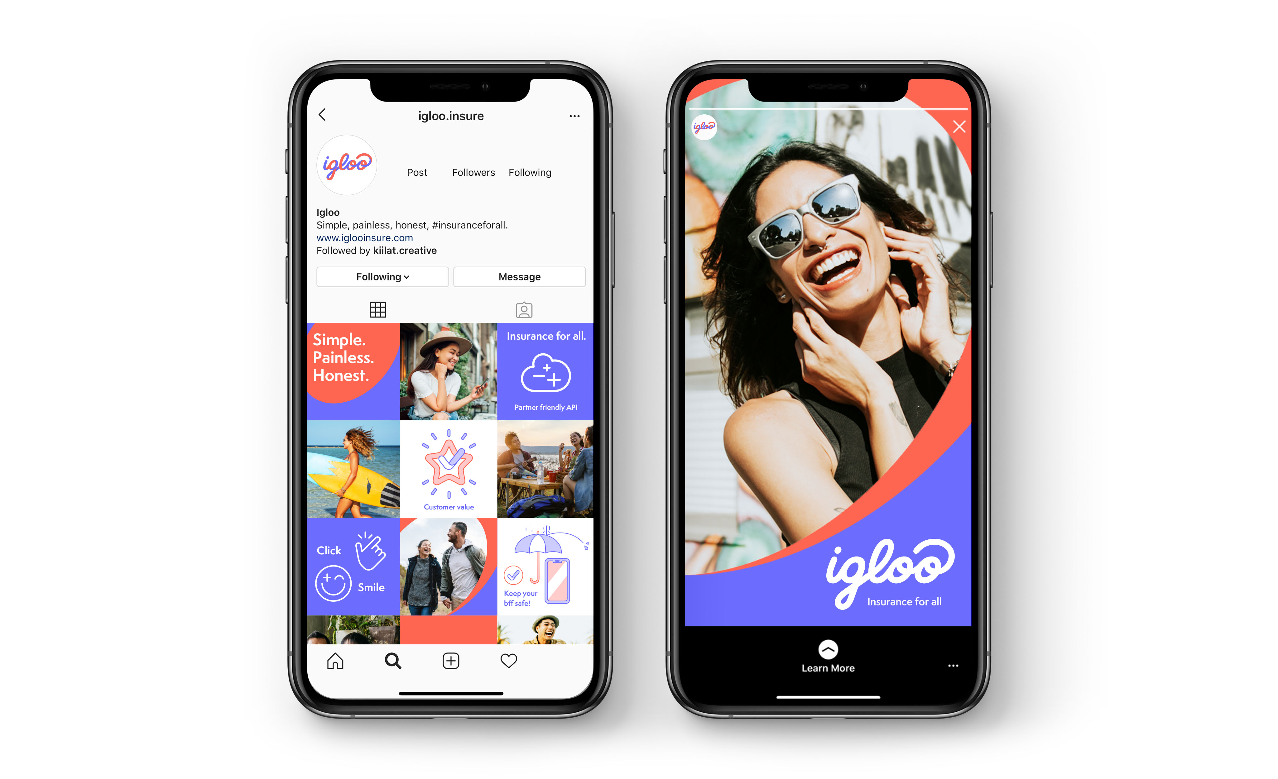 Igloo is an Insurtech company changing the insurance industry with easy-to-understand and relevant products for digital natives and adopters in today's world. The brand identity's fluid and frictionless feeling allude to Igloo's smooth and easy process - everything that insurance should be. We extended the frictionless brand story throughout all design elements.