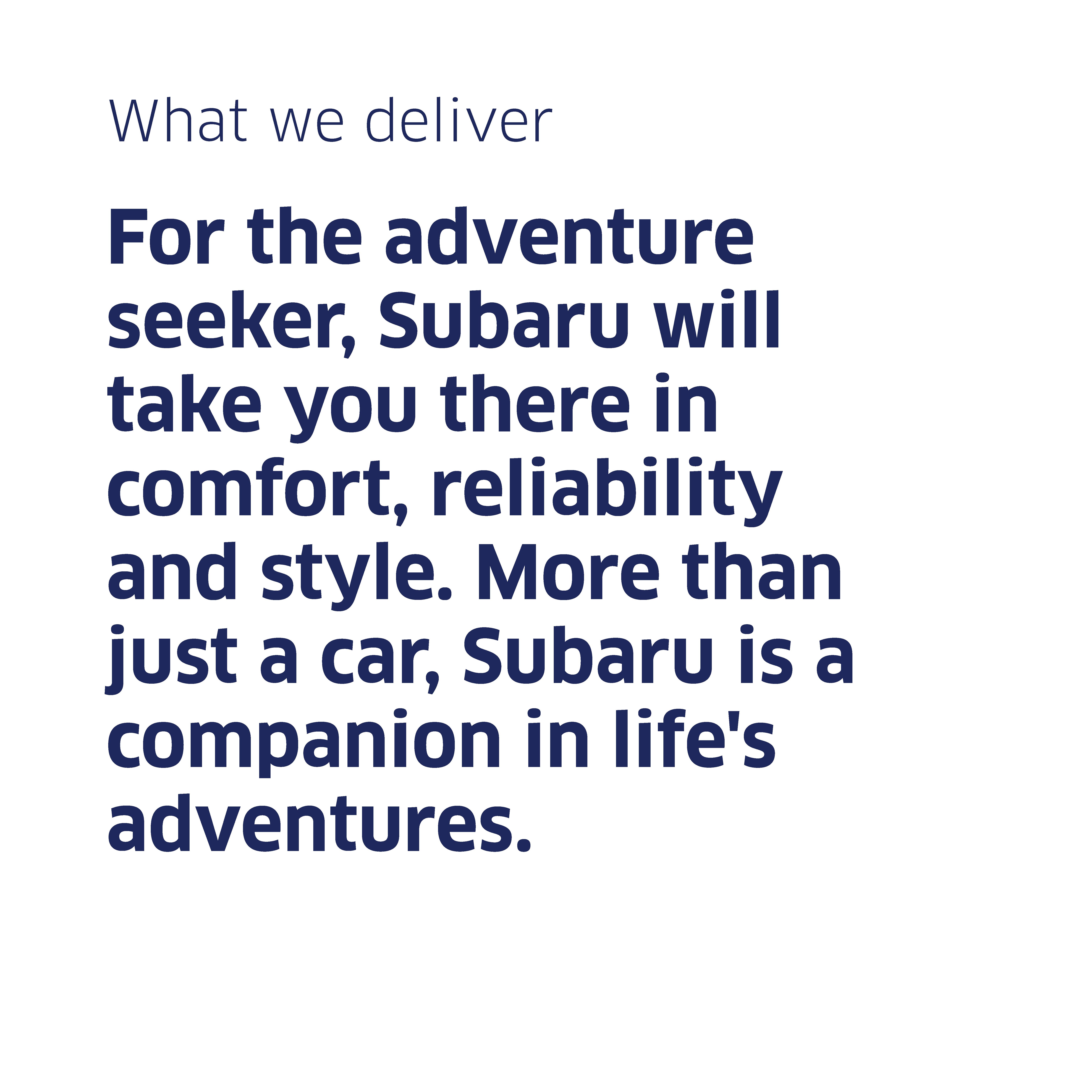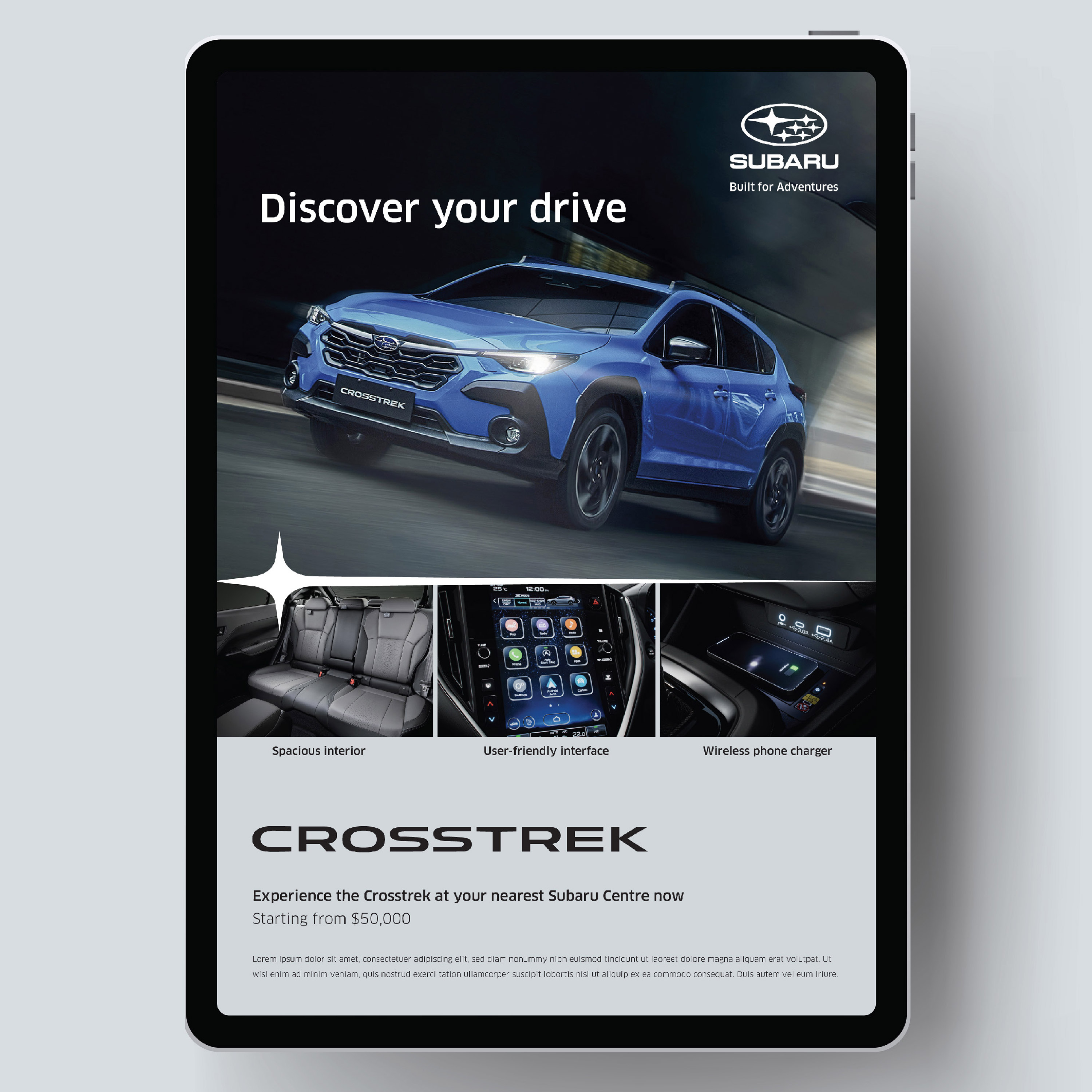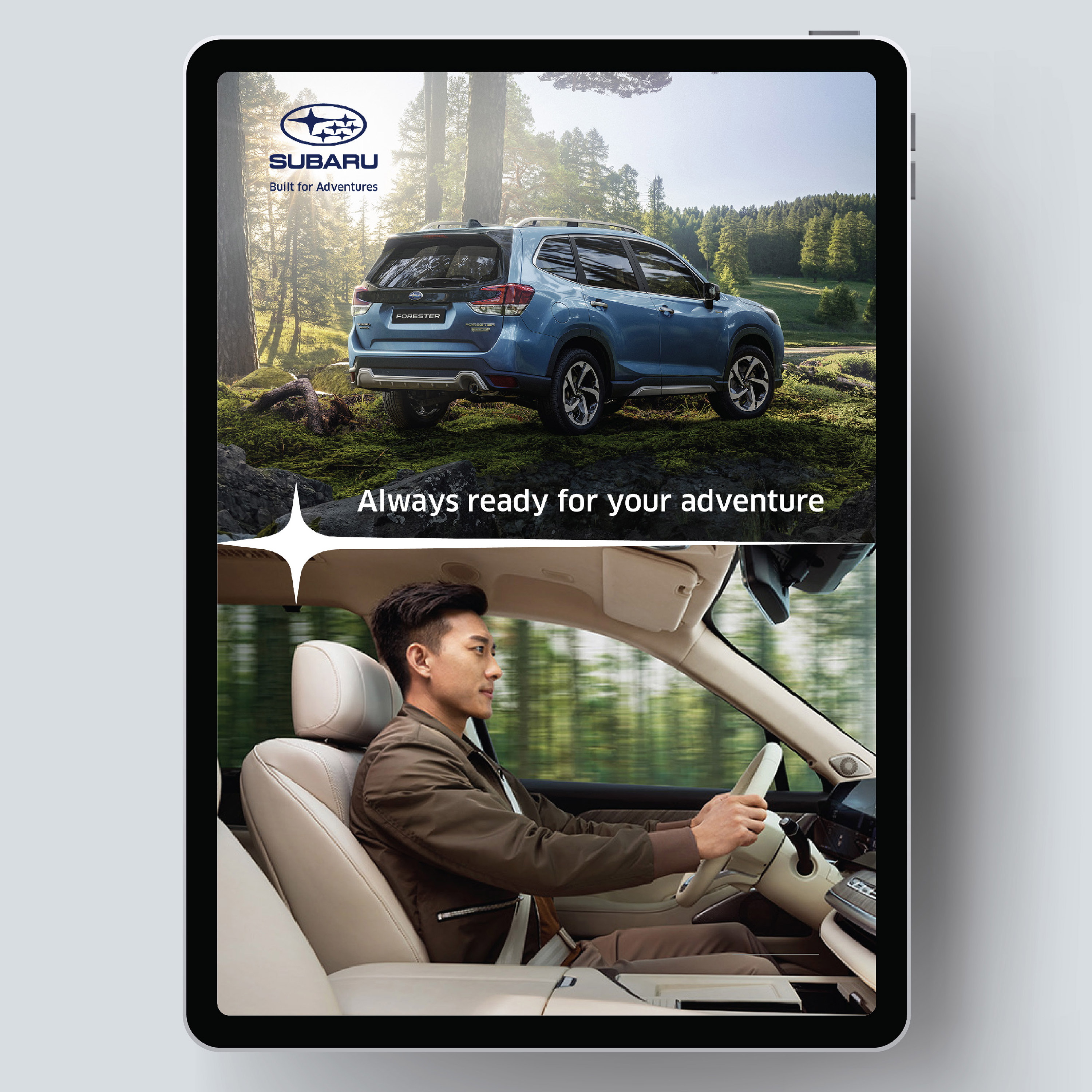 Zipiing Global Pte Ltd. LTD was invited to Pitch ideas for Subaru Asia. The brief objective was to provide brand strategy, design, and visual communication perspectives to update the current Subaru Asia brand positioning from a strategic and visual perspective. Our approach focused on the key brand positioning that Subaru is "Built for Adventures" and we highlight this positioning through brand tone-of-voice, master brand design elements and applications. The Zipiing Global Pte Ltd. LTD team put together a strategic brand complementary pitch presentation within a short timeline. This set of works demonstrates Zipiing Global Pte Ltd. LTD's abilities to present a professional brand perspective to increase brand success for clients.